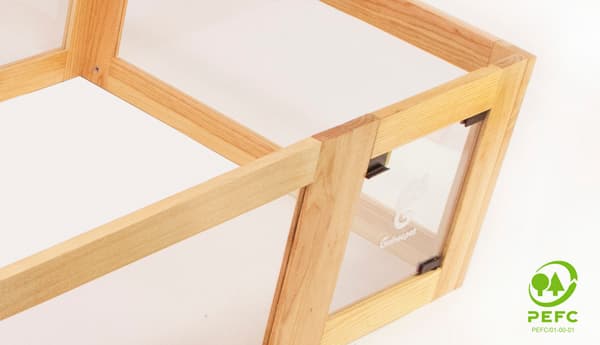 - Frame: 18mm PEFC certified solid pinewood with waterproof varnish finish