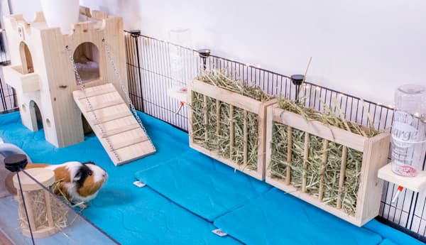 Guinea pigs love to hide. Adding tunnels, cozy hideouts, or wooden houses gives them a sense of security and provides all the comfort they deserve. More accessories can enrich their environment, promote activity and exploring behavior, and allow your little friends to relax. Having one hidey for each little friend is a good idea since Guinea Pigs enjoy some time alone, and little choice can lead to disputes between them.